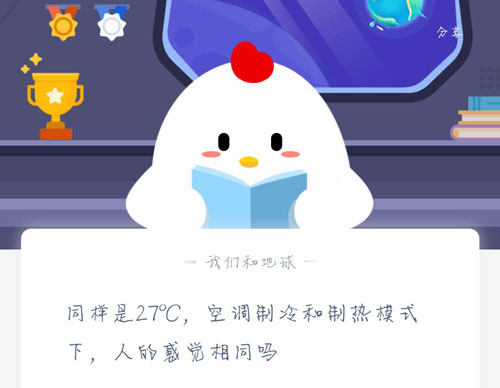 同样是27℃,空调制冷和制热模式下,人的感觉相同吗?在支付宝蚂蚁庄园每日一题中,9月25日的问题是问同样是27度,空调制冷和制热模式下,人的感觉相同吗?同样是27度为什么体感温度不一样,下面就和小编一起来看看吧!