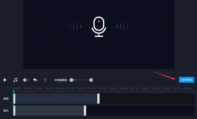 背景音乐添加之后,点击【合并导出】,即可保存经过处理的录音文件。