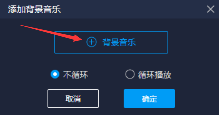 进入以下界面,如图,点击【添加背景音乐】,出现弹窗,选择背景音乐文件,将其导入,然后设置【不循环】或者【循环播放】,