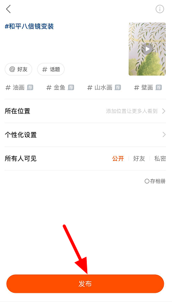 拍摄完成,编写文案,然后点击【发布】,成功发布短视频作品。