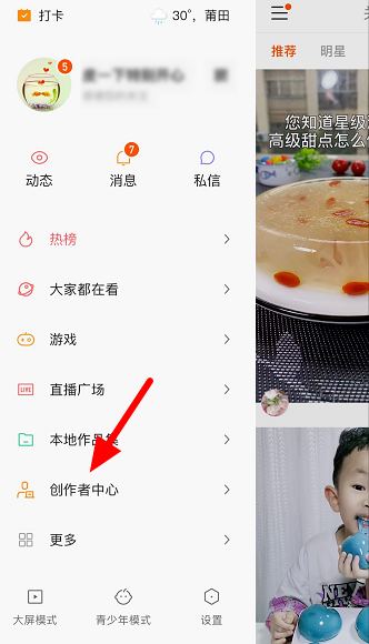 打开快手短视频,进入界面,点击左上角的主菜单,