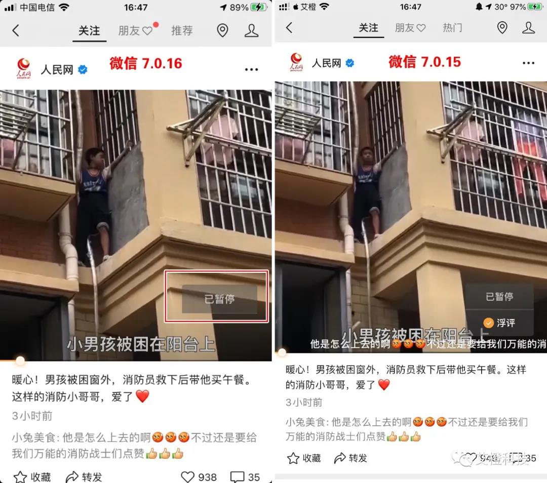 在微信7.0.16 测试版,视频号暂停了浮评功能。