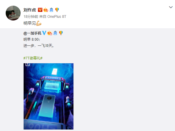 值得一提的是,9月21日晚间,一加科技官宣将于今早公布一加8T的更多信息,或是要宣布这款手机的发布时间,值得期待。