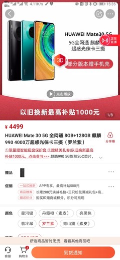 华为Mate30系列从发布到现在已经过去将近一年的时间了,按照惯例,官方应该至少调价400元左右了,但是我们从华为商城了解到,现在Mate30系列的优惠只有领券直减100元的优惠,其中还不包括Mate30,仅限于Pro版本。从购买页面可以看到,Mate30的优惠是以旧换新最高补贴1000元,并没有领取优惠券或者直降调价的福利。