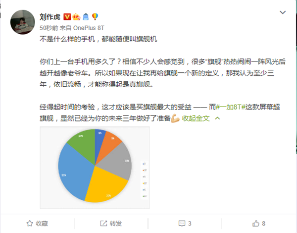 9月22日消息,一加创始人兼首席执行官刘作虎为新旗舰一加8T预热。