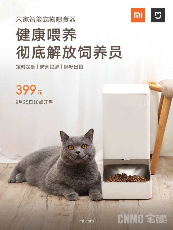 米家智能宠物喂食器售价399元,将于9月25日10点正式开售。