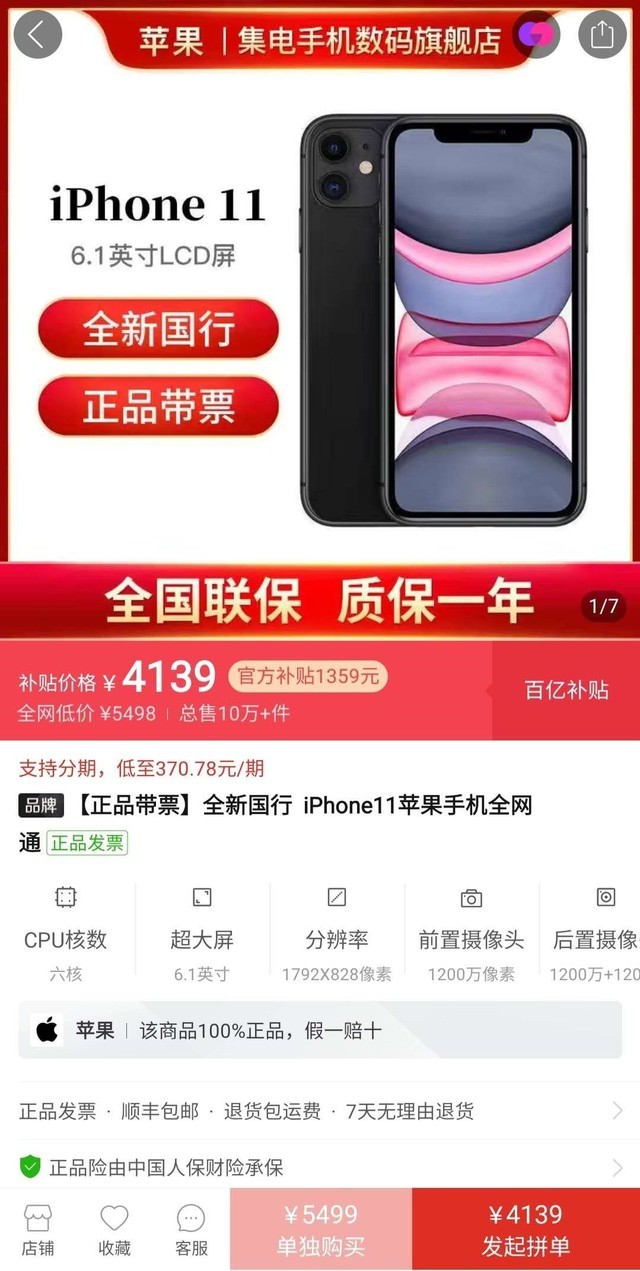 说到拼多多的百亿补贴,在他“成神”之路上离不开iPhone XR以及iPhone 11系列的“战果”。如今可以看到,iPhone 11系列在拼多多百亿补贴活动下显得性价比颇高,在官网上,iPhone 11 起售价为5499元,而在拼多多百亿补贴活动下仅4139元,上千元的补贴还是非常划算的。大胆预测一波,在iPhone 12上市后,拼多多一定会有所动作,进行一波百亿补贴。