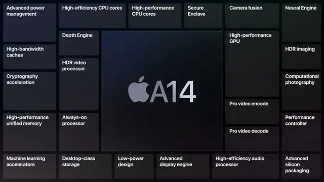 对于这颗芯片还是要简单介绍一下,A14仿生芯片采用5nm制程工艺,相比于上一代A13芯片采用的7nm工艺,理论上性能更好、功耗更低。虽然A14芯片同样采用 6核心CPU、4核心GPU,但A14拥有118亿个晶体管,相比A13的85亿个高出不少。同时在AI性能上,A14也有着不小的提升,搭载了全新的16核Neural Engine,核心数比前代增加一倍,最高能够每秒处理 11 万亿个操作。