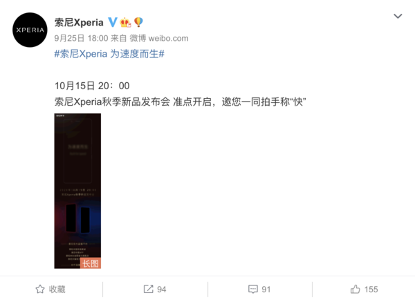索尼Xperia秋季发布会10月15日见