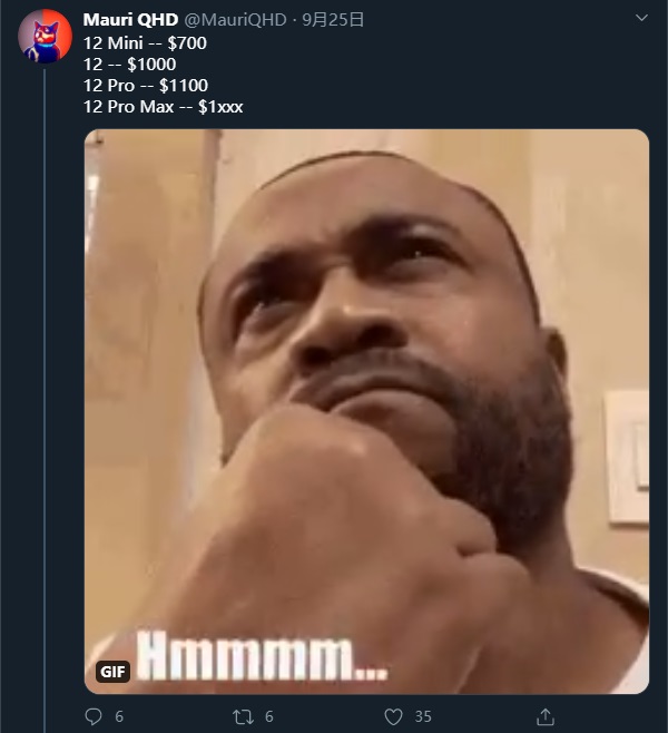 此外,知名爆料者 @MauriQHD 也表示支持涨价理论,表示 iPhone 12 将定价 999 美元左右(iPhone 12 mini 依然保持 699 美元左右)。