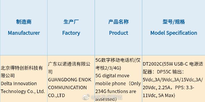 继此前型号为 DT2002C 的坚果 5G 新机通过无线电认证后,据博主 @数码闲聊站 介绍称目前这款坚果 5G 新机也已入网,标配全新 CtoC 充电器并支持 11V 5A 最高 55W 功率快充。