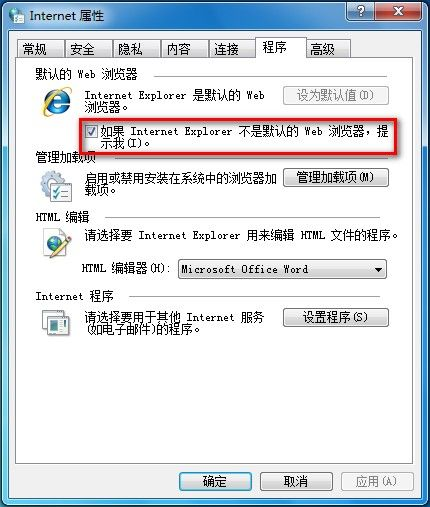 Win7系统取消默认浏览器的提醒方法
