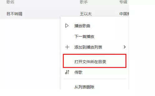 5.以后挑选不久下载的歌曲,鼠标右键点击它,在新出現的往下拉栏中挑选点击“打开文件所属文件目录”选择项就可以开启下载文件目录的文件夹名称