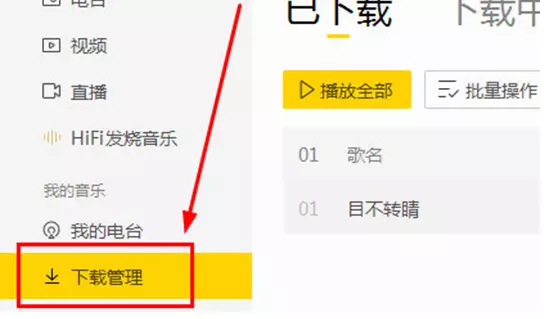 4.客户能够 在酷狗音乐盒主界面的左侧我的相册中,寻找下载管理方法这一个管理方法选择项,在其中能够 见到不久下载的歌曲与仍在下载当中的歌曲,还能够在这里里边开展大批量的删掉、播放视频与加上