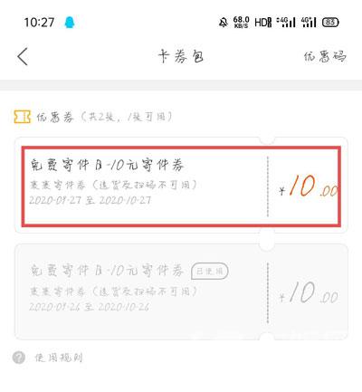 4、然后就能获得10元寄件券啦,如果现在就需要寄出快递,点击“去寄件”使用优惠券;
