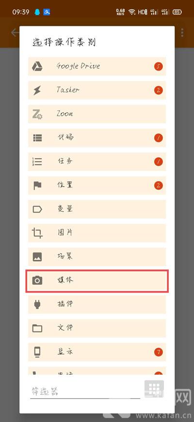 6、随后选择需要的操作类别为【媒体】;