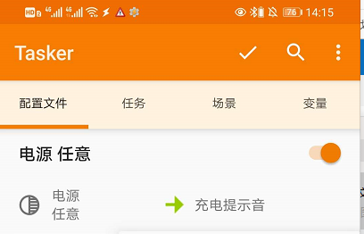2、打开自己设置充电提示音的软件,(以下以“tasker”软件为例),打开“tasker”软件,在首页找到充电提示音的任务。