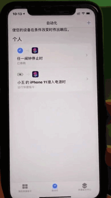 1、首先找到快捷指令,点击进入,在进入到自动化界面。