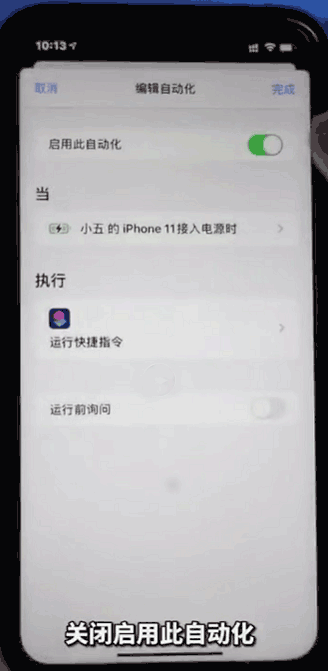 3、在任务界面,点击关闭上方的“启用此自动化”,再次点击右上角的完成即可。