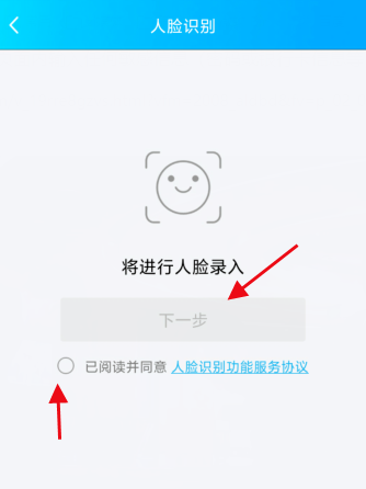 点击启用人脸识别功能,阅读并同意服务协议,进行下一步,