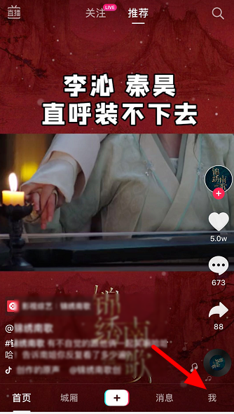 在手机中打开抖音APP,进入界面,点击下方的【我】,
