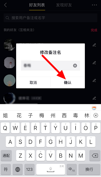 出现弹窗,删除昵称,输入备注名,然后点击确认,