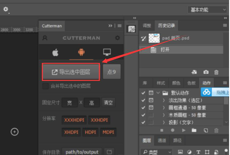 6、再将需要Cutterman切图的图层选中,并点击“导出选中图层”按钮。