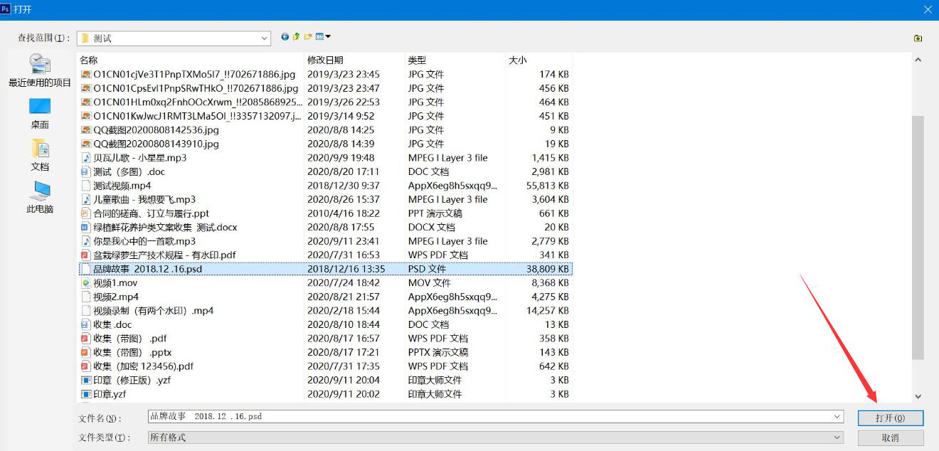 2、在弹出的窗口中,将需要Cutterman切图的PS文件选中,点击“打开”按钮。