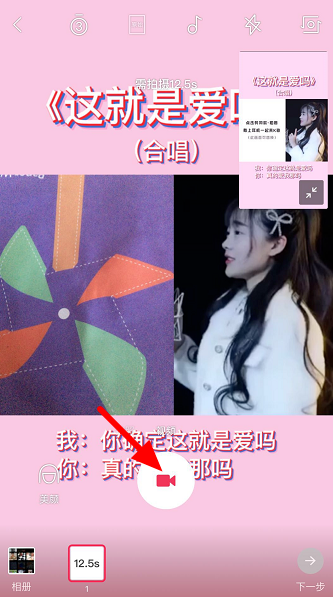 进入视频录制窗口,点击白色圆圈,开始跟唱,