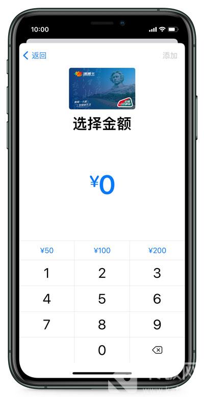 7、点击右上角的【添加】,支付完成后,就可以直接使用该卡乘坐公交地铁出行;