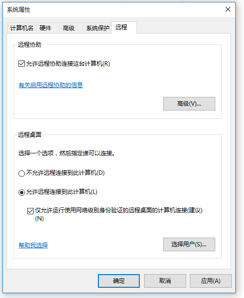 进入系统属性弹窗,如图,点击【远程协助】,勾选【允许远程协助连接这台计算机】,然后点击【远程桌面】,勾选【允许远程连接到此计算机】,