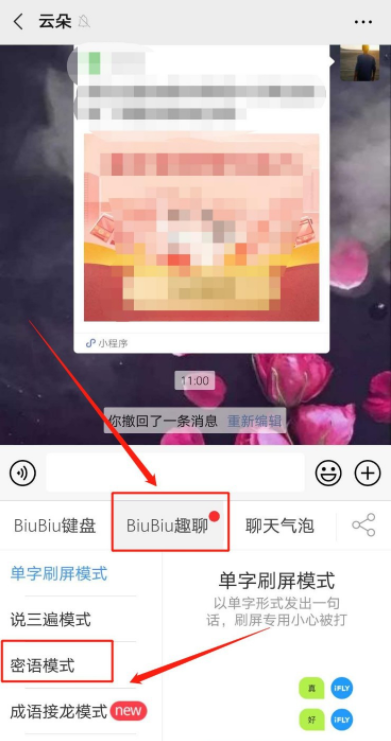 打开BiuBiu趣聊功能,如图,点击左侧的【密语模式】,