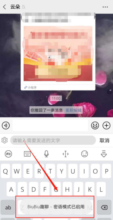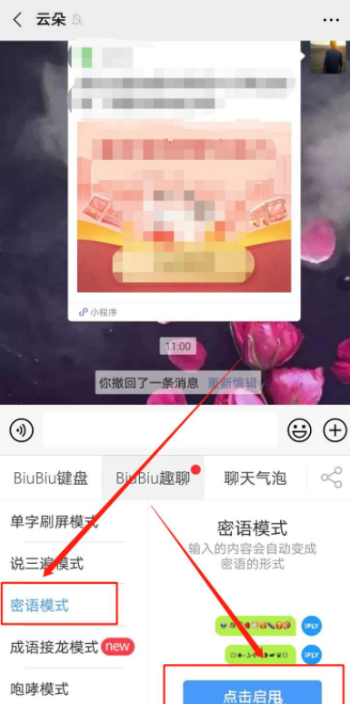 如图,选择【点击启用】,提示“BiuBiu趣聊-密语模式已启用”,
