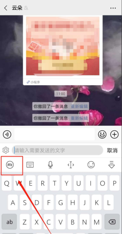 如图,打开手机微信,点击进入一个聊天窗口,将输入法切换为讯飞,点击讯飞图标,