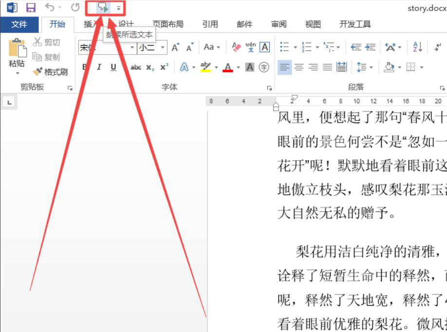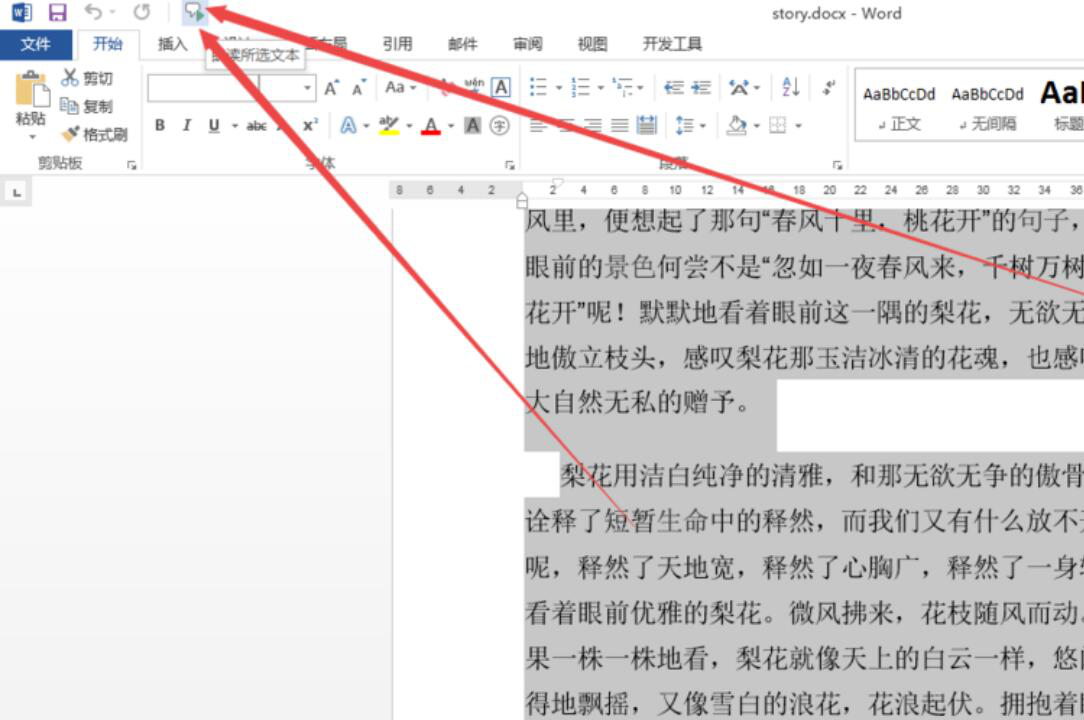 6、接着,我们将需要朗读的文本内容选中,再点击“朗读”按钮,就能听到所选的文本内容了。