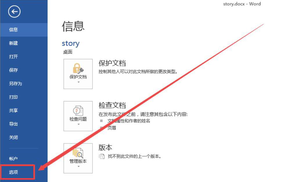 2、然后,点击word“文件”菜单中的“选项”,如下图。