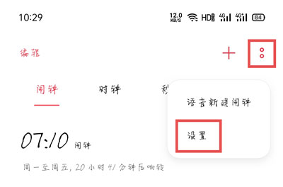 2、进入之后,首先确保自己已经设置了一个6:00 - 8:30之间的闹钟,并且30分钟之后无其他闹钟(如果不满足该条件,那么晨间播报开启后将无反应);