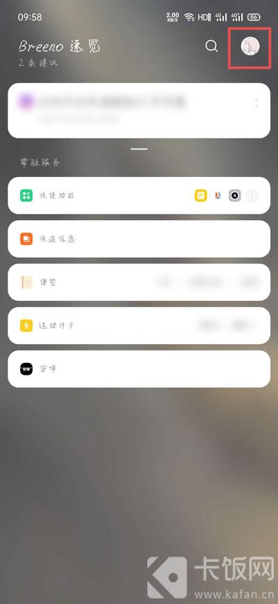 3、也可以通过手机桌面,进入负一屏页面,点击右上角的【个人头像】;