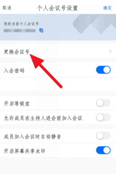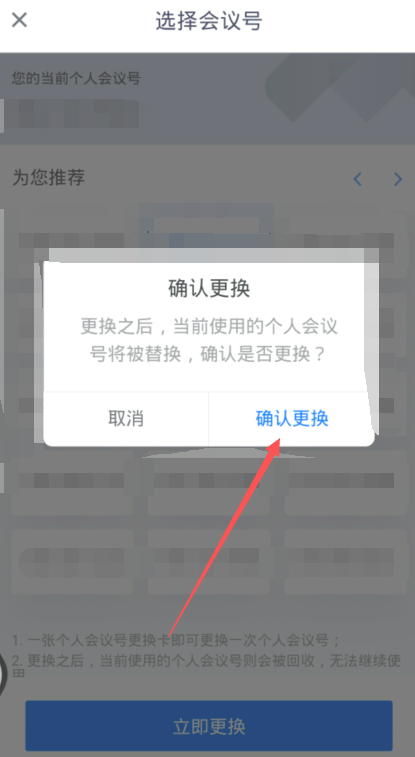 弹出提示,点击【确认更换】,个人会议号更换完成。
