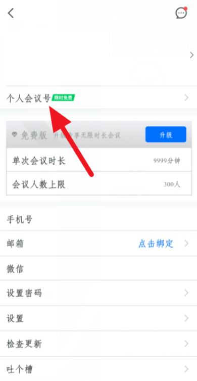 3、进入个人会议号设置界面,点击【更换会议号】,