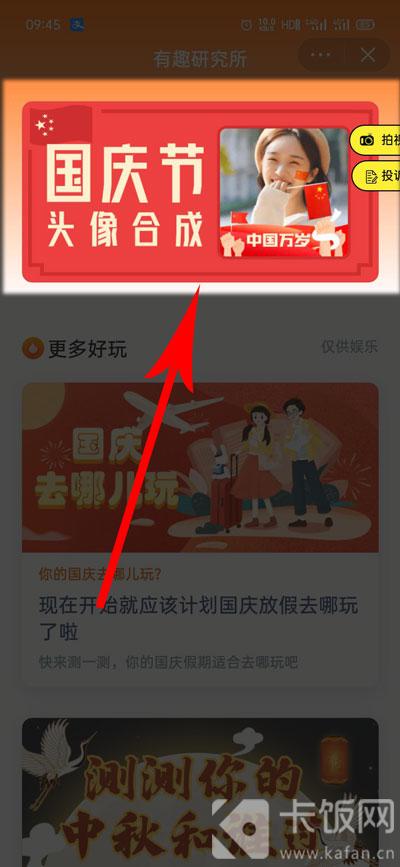 3、随后在有趣研究所的小程序内,点击最上方的【国庆节头像合成】进入;
