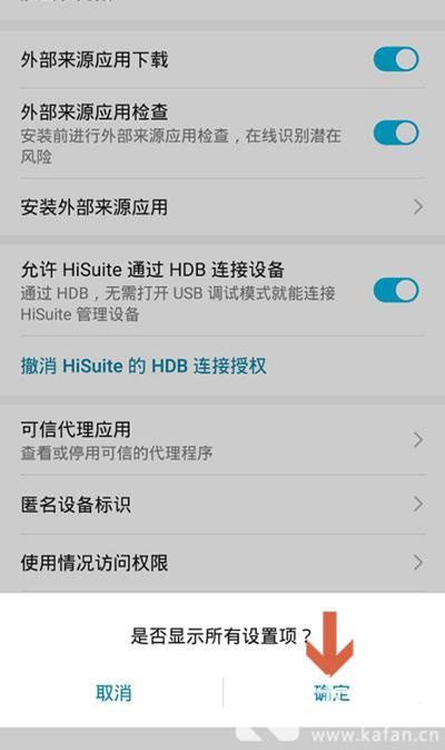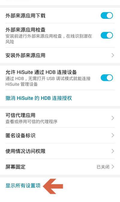 3、在最下方选择【显示所有设置项】,将隐私空间的入口显示;