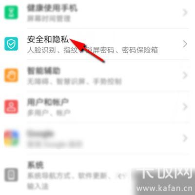 1、打开华为手机中的【设置】,在设置中下滑找到【安全和隐私】设置;
