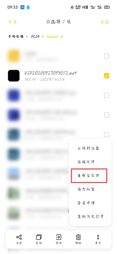 6、大家可以选择重新命名文件名字,然后将后方的【mp4】改为【mp3】;