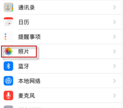3、随后在隐私设置中,选择【照片】;