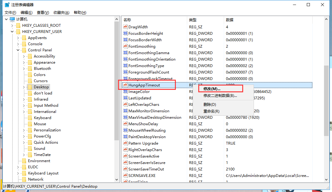 5、再次找到HungAppTimeOut,单击右键,进行修改,