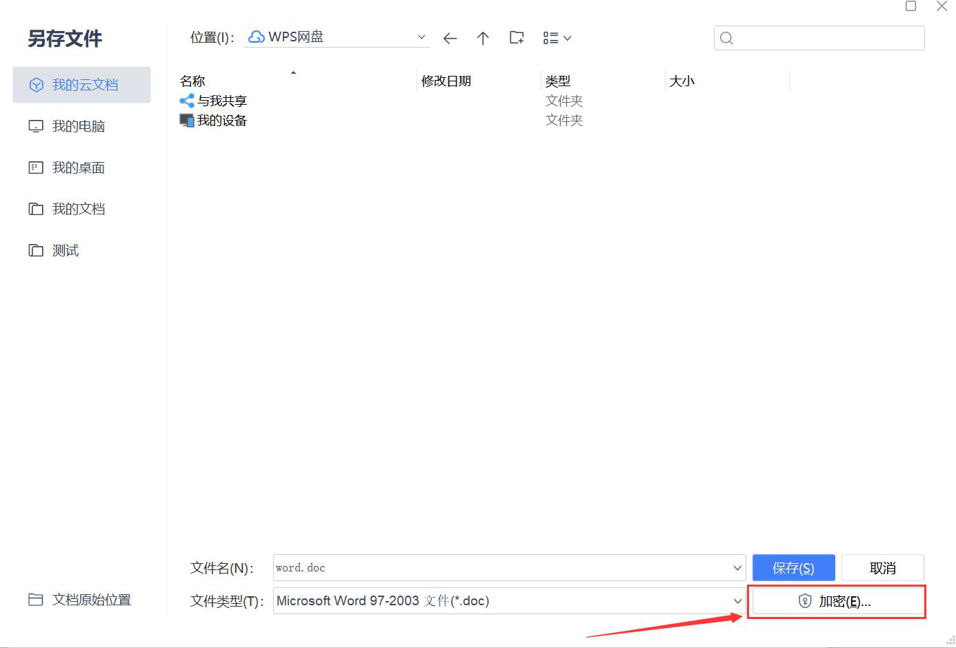 3、弹出“另存文件”窗口,要为该word文档加密,因此,在此窗口中直接点击“加密”按钮。