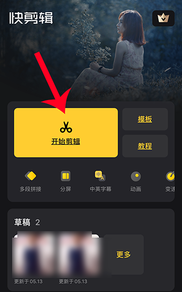 在打开中打开快剪辑APP,进入界面,切换至创作窗口,点击【开始剪辑】,