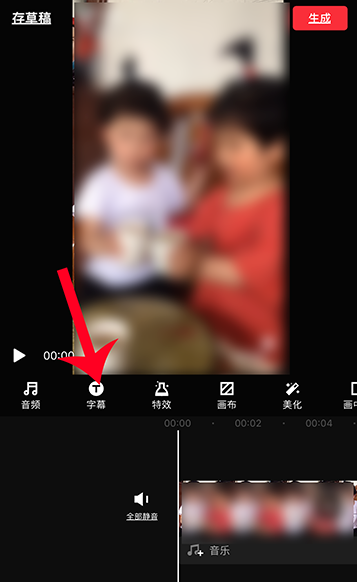 视频导入成功,进入剪辑窗口,如图,点击【字幕】功能,