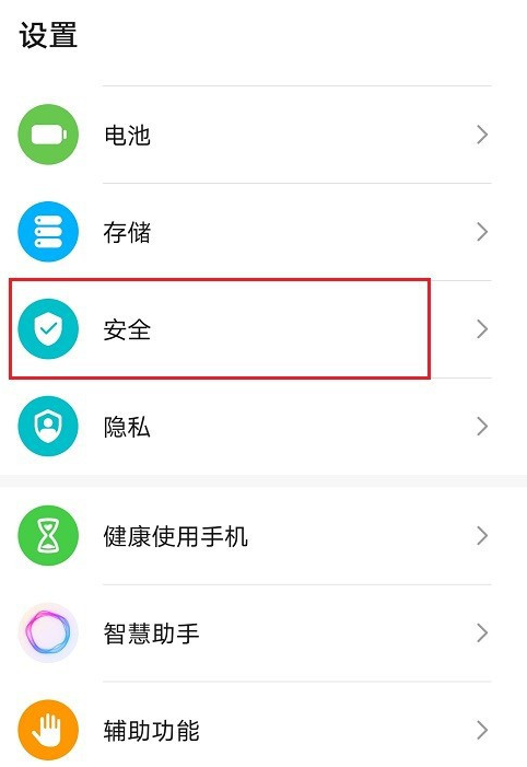 打开华为手机,点击进入设置界面,点击【安全】,